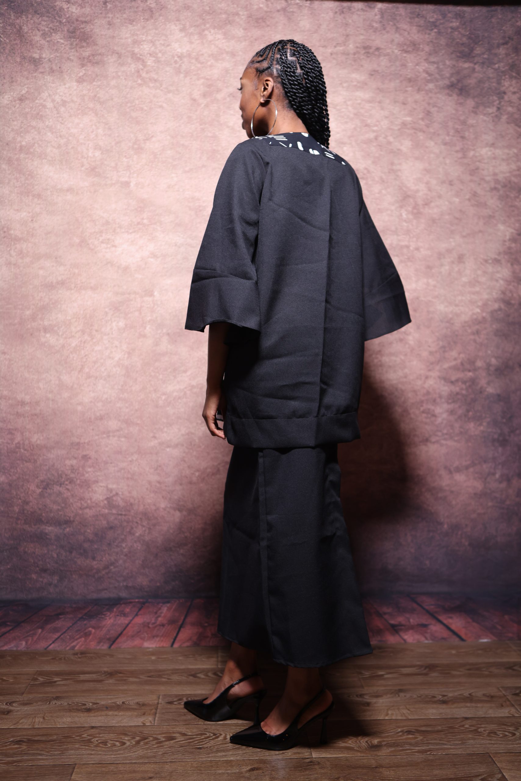Le mannequin mesure 174 cm et porte une taille 34/36
