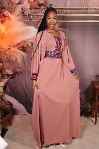 – Robe longue en tissu crêpe