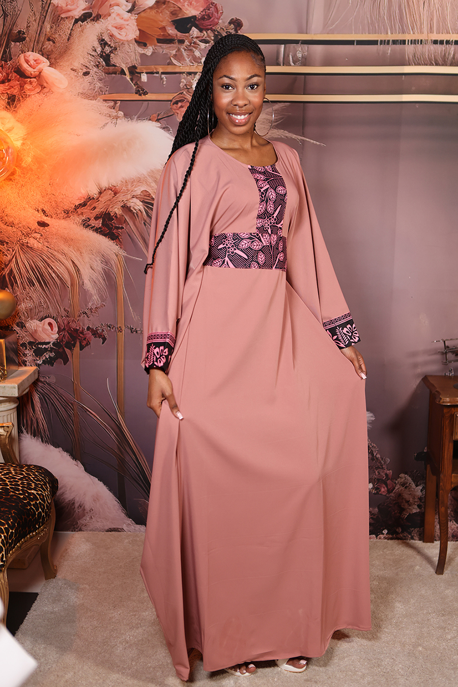 Longueur robe 149 cm, longueur manche 69 cm, le mannequin mesure 174 cm, convient du 34 au 50
