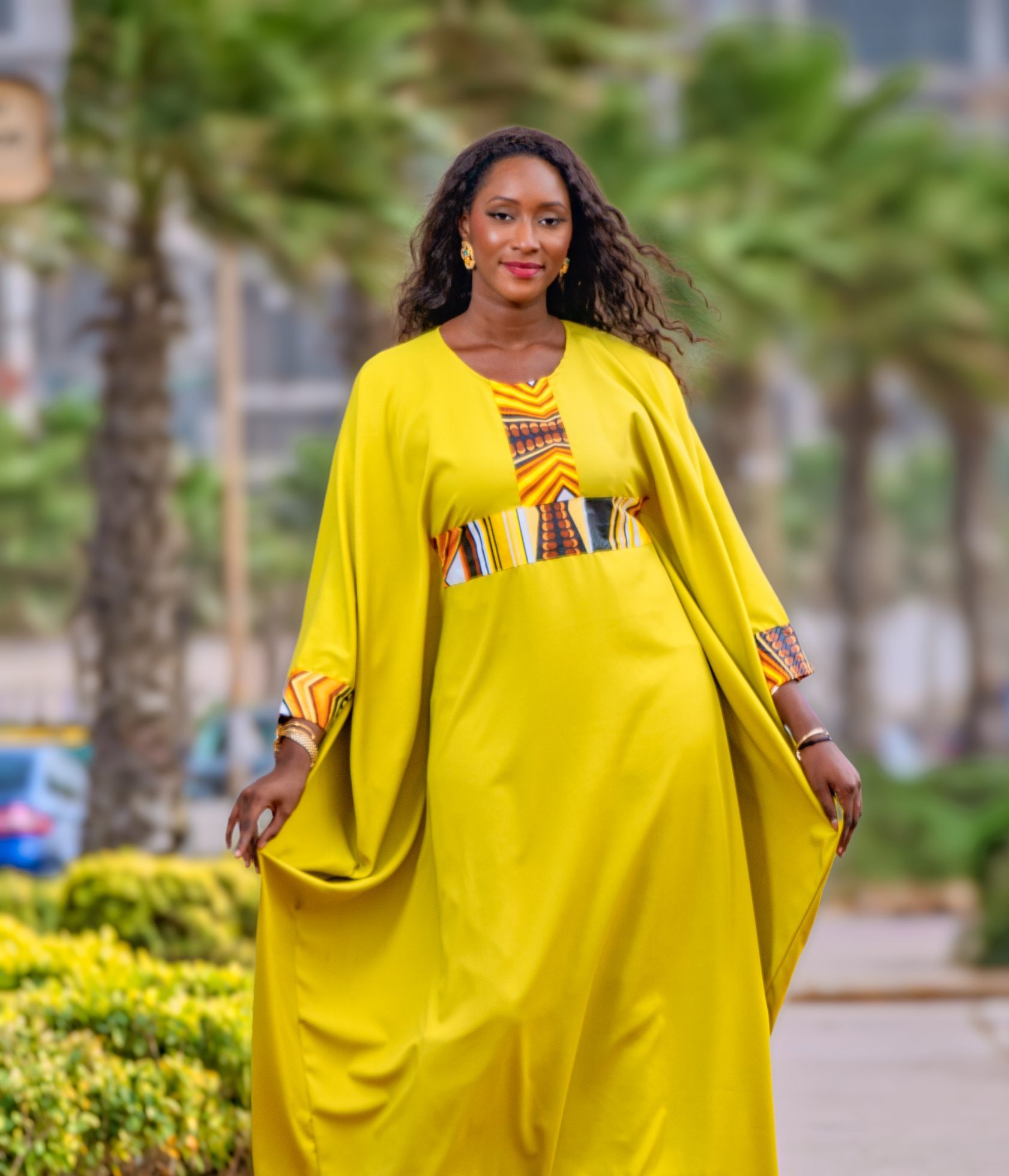 – Manche ample avec tissu wax sur l’ourlet